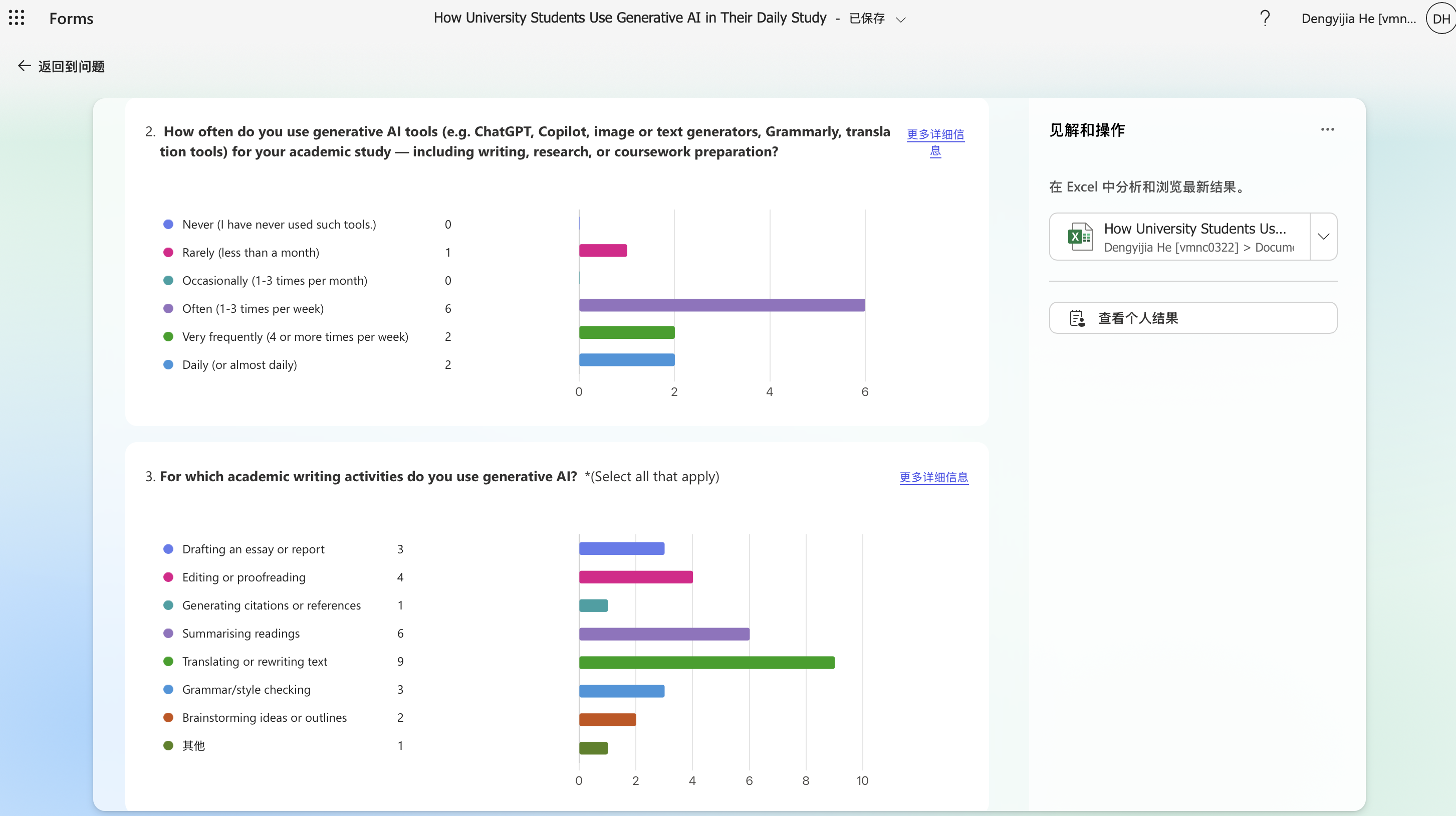 This week, we made a visual analysis of the questionnaire data collected last week, mainly through pie charts and line charts in Excel,