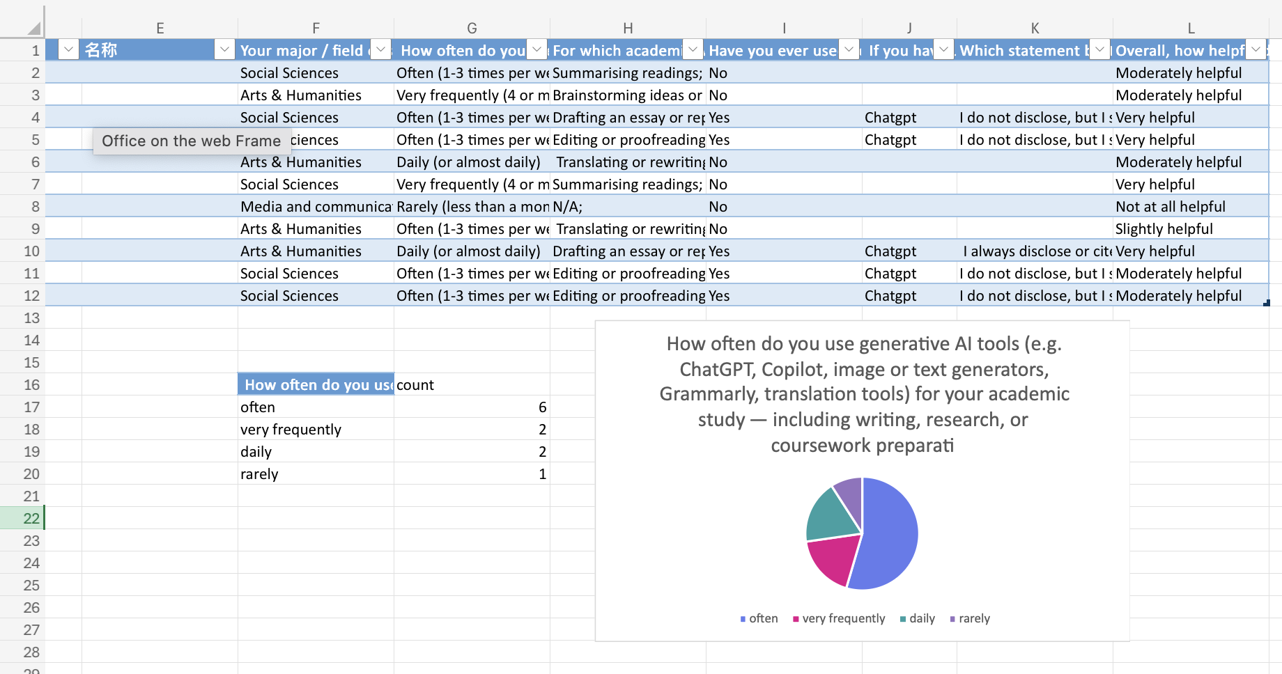 This week, we made a visual analysis of the questionnaire data collected last week, mainly through pie charts and line charts in Excel,